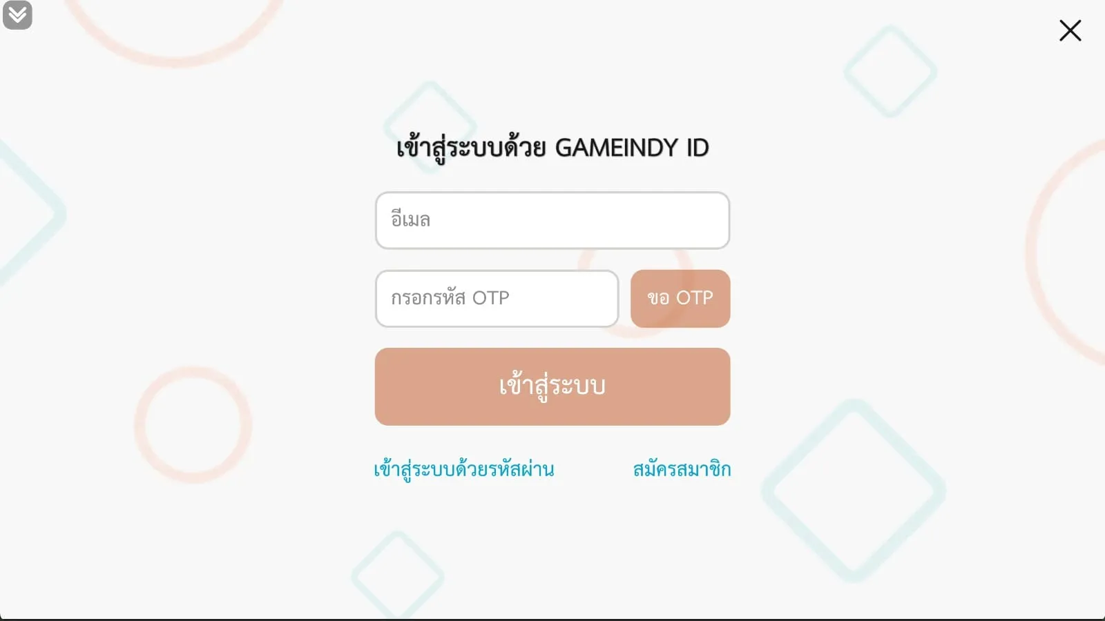 3.หากมีบัญชีที่สมัครกับทาง GAMEINDY อยู่แล้ว ให้ใส่อีเมลล์ที่สมัครได้เลย สามารถเลือกได้ 2 อย่างคือ รับเลข OTP ในอีเมลล์ หรือใช้รหัสผ่านในการผูกบัญชี.