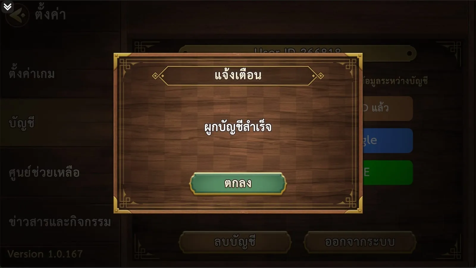 5.หากมีแจ้งเตือน ผูกบัญชีสำเร็จ ถือว่าเป็นอันเสร็จสิ้นการผูกบัญชี ผู้เล่นจะสามารถใช้ GAMEINDY ID ในการเข้าเล่นได้ทันทีครับ