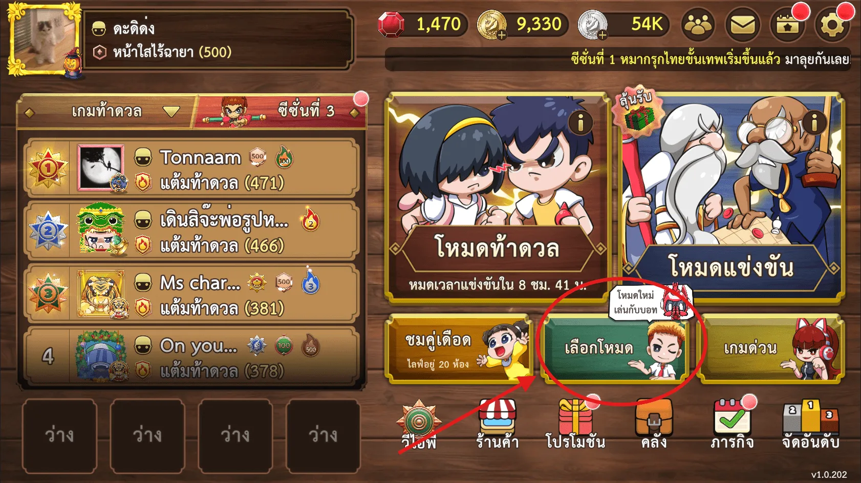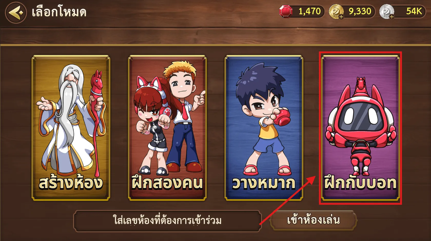 ขั้นตอนที่ 2 เมื่อเข้ามาแล้วให้กดเมนู "ฝึกกับบอท"