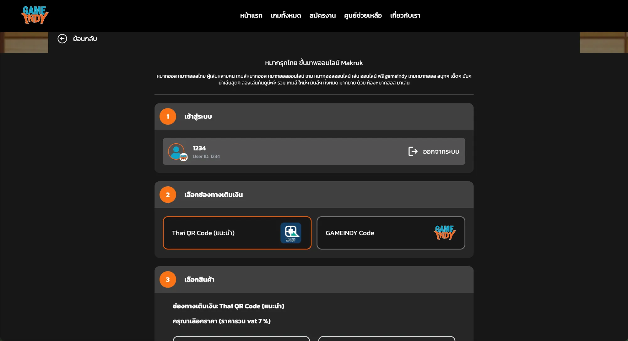 วิธีการเติมเงินเกมหมากรุกขั้นเทพสำหรับเว็บไซต์ pay.gameindy.com