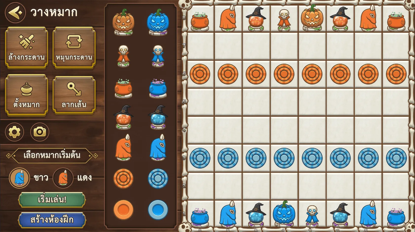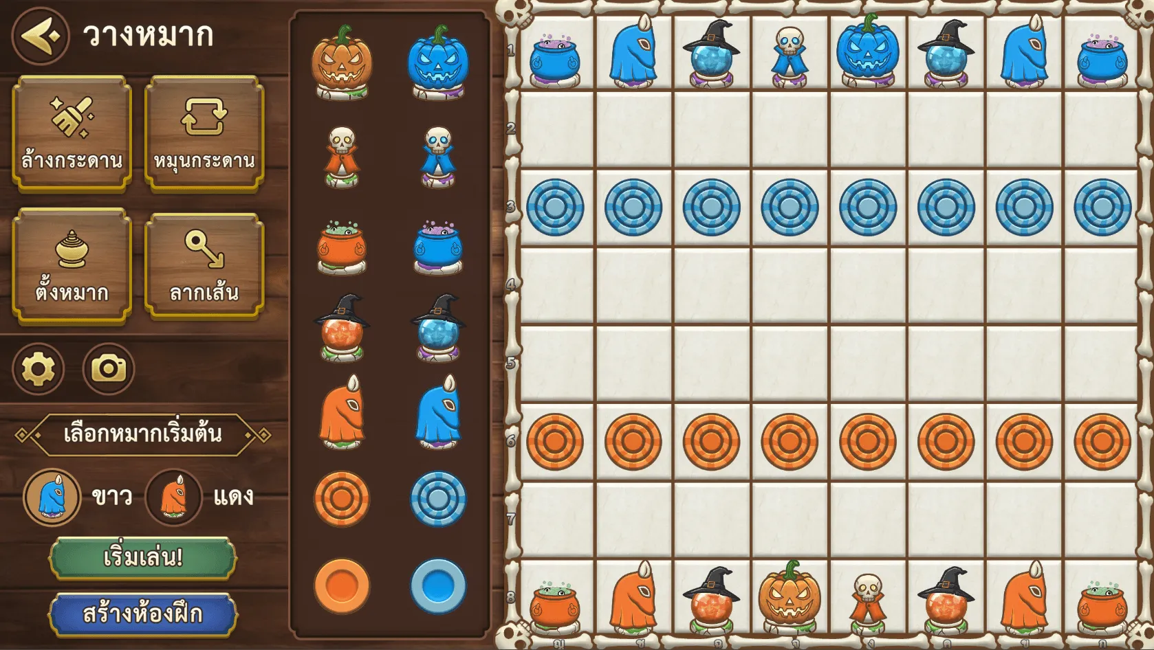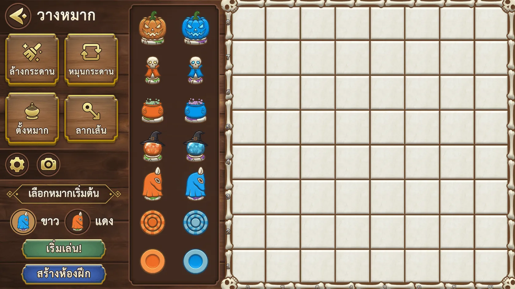 ตัวอย่างฟีเจอร์ "ล้างกระดาน" ผู้เล่นสามารถเลือกหมากต่างๆ ทางด้านขวาเพื่อวางตามต้องการได้