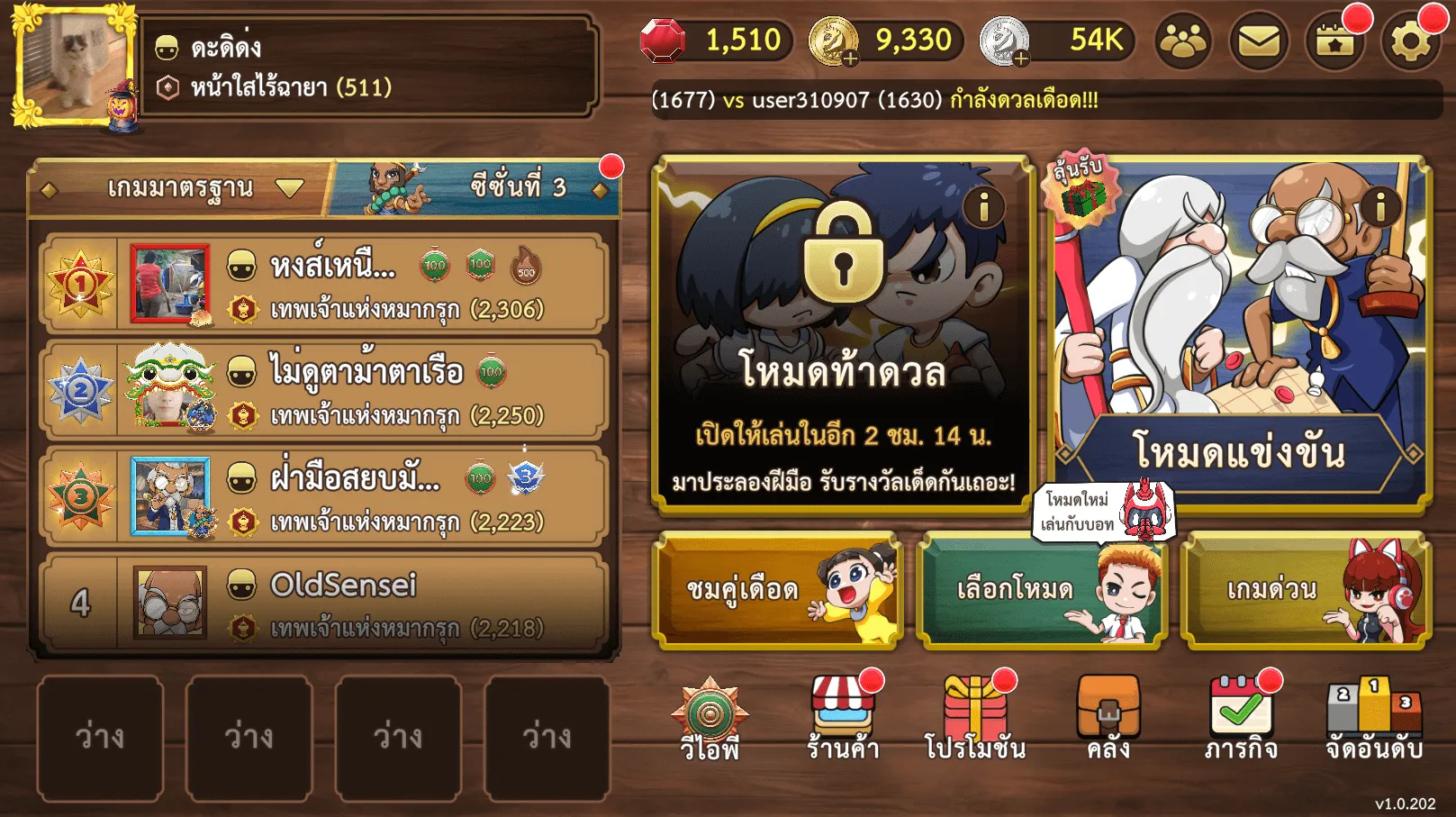 แนะนำโหมดต่างๆ ของเกม หมากรุกไทย
